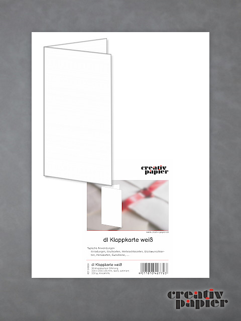 Die Klappkarten (Doppelkarten) werden aus weißem, glatten Farblaser-Feinkarton hergestellt.
